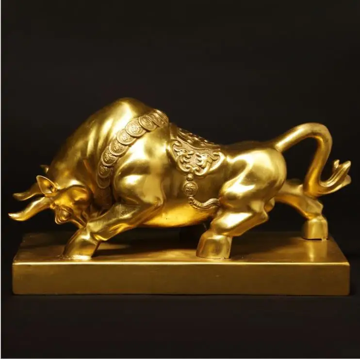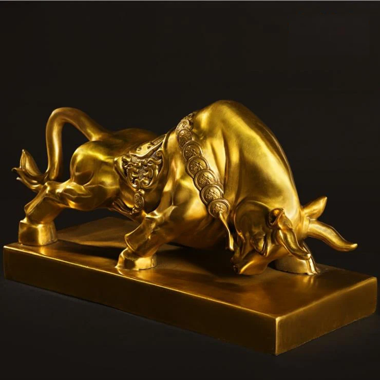 BEST QUALITY Cow Ornaments Brass Bull Statue Big Wall Street Bronze Fierce Bull Sculpture Home Living Room Study