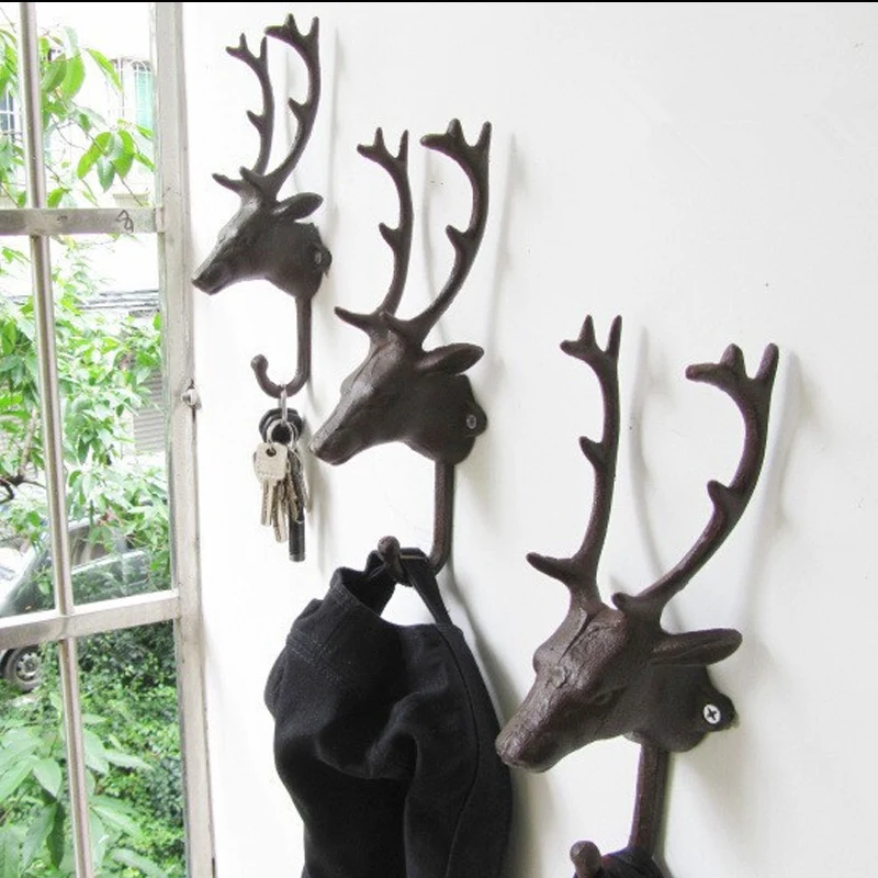 HIGH QUALITY Vintage Artcrafts Wall Hanging Hooks Deer Storage Hanger Coat Hook Door Hooks Metal Crafts Shop Bar