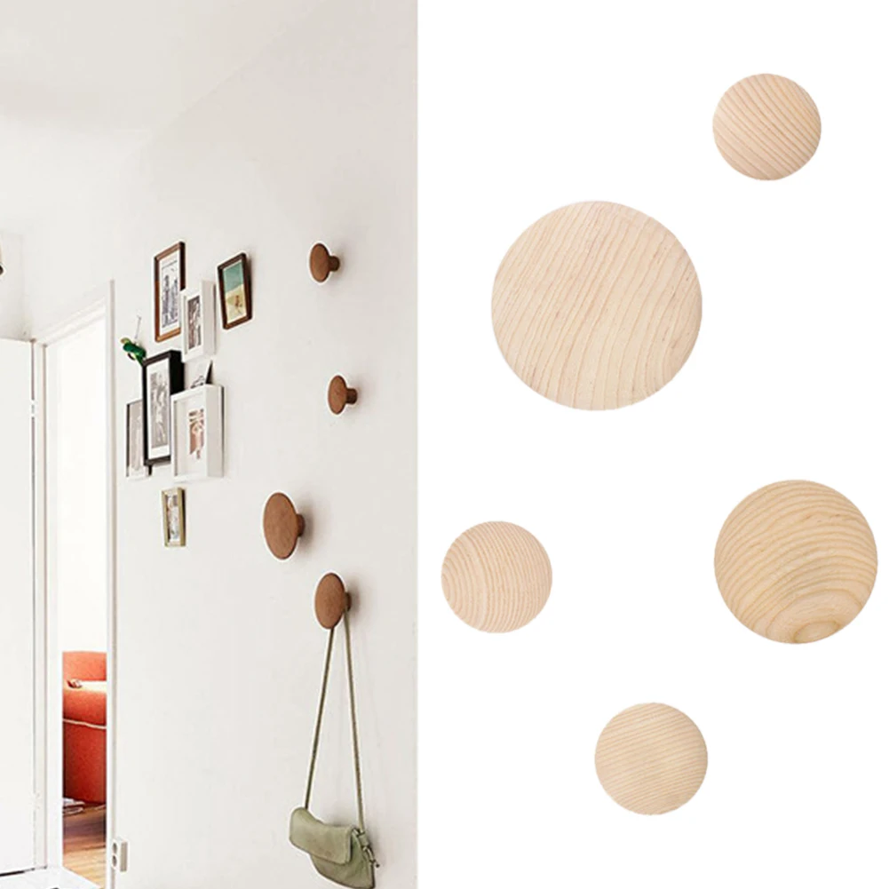 5pcs Solid Wood Living Room Round Dots Door Bedroom Wall Hook Set Home Decoration Organizer Rack Co