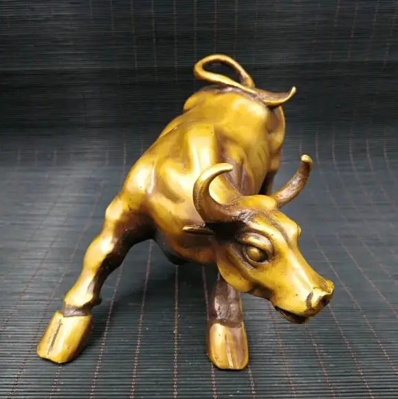 Chinese Pure brass Wall Street brass cattle crafts statue