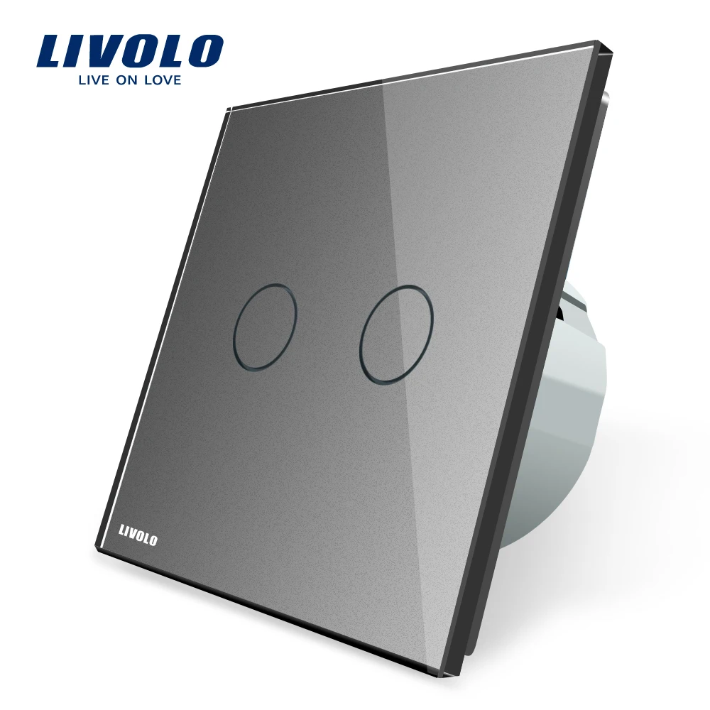 ORIGINAL Livolo 2 Gang 1 Way Wall Touch Switch White Crystal Glass Switch Panel EU Standard 220-250VVL-C702-