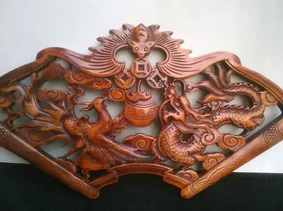 Review CHINESE HAND CARVED DRAGON & PHOENIX STATUES CAMPHOR WOOD PLATE WALL SCULPTURE**