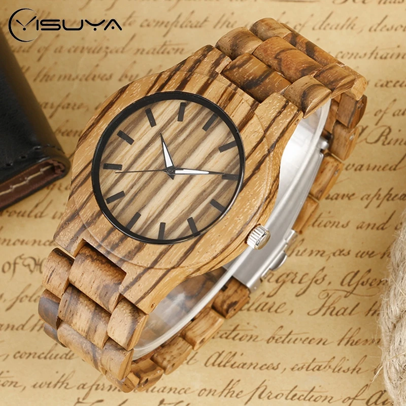 REVIEW TOP SELLER Full Stripe Bamboo Creative Wooden Watches Novel Nature Wood Mens Wrist Watch Timber Band Fold Clas